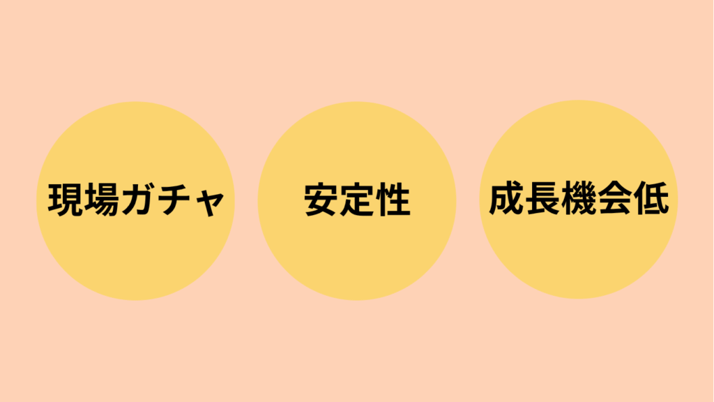 一方で、「現場がコロコロ変わる」「自分で現場を選べない」といった側面もあるため、