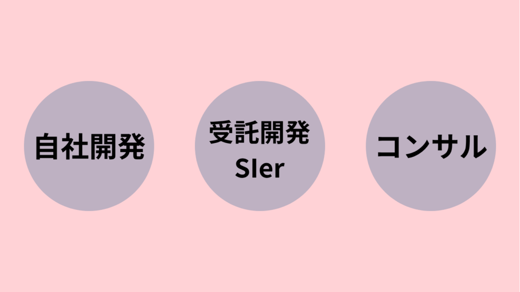 インフラエンジニアにはSES以外にも「自社開発企業」「受託開発・SIer」「クラウドベンダー・コンサル企業」という3つの働き方があります。